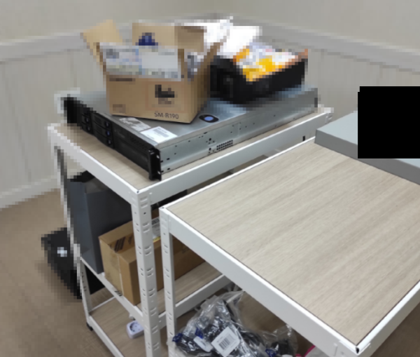 서버랙이 아닌 무볼트 선반으로 서버사이즈에 맞게 구매하여 이 선반에서 서버를 운영하였습니다.